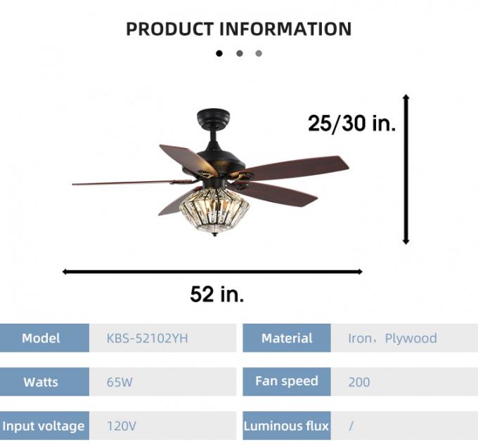 Einziehbares Deckenlüfter-Licht Crystal Lampshade Silents LED 36W mit faltenden Blättern